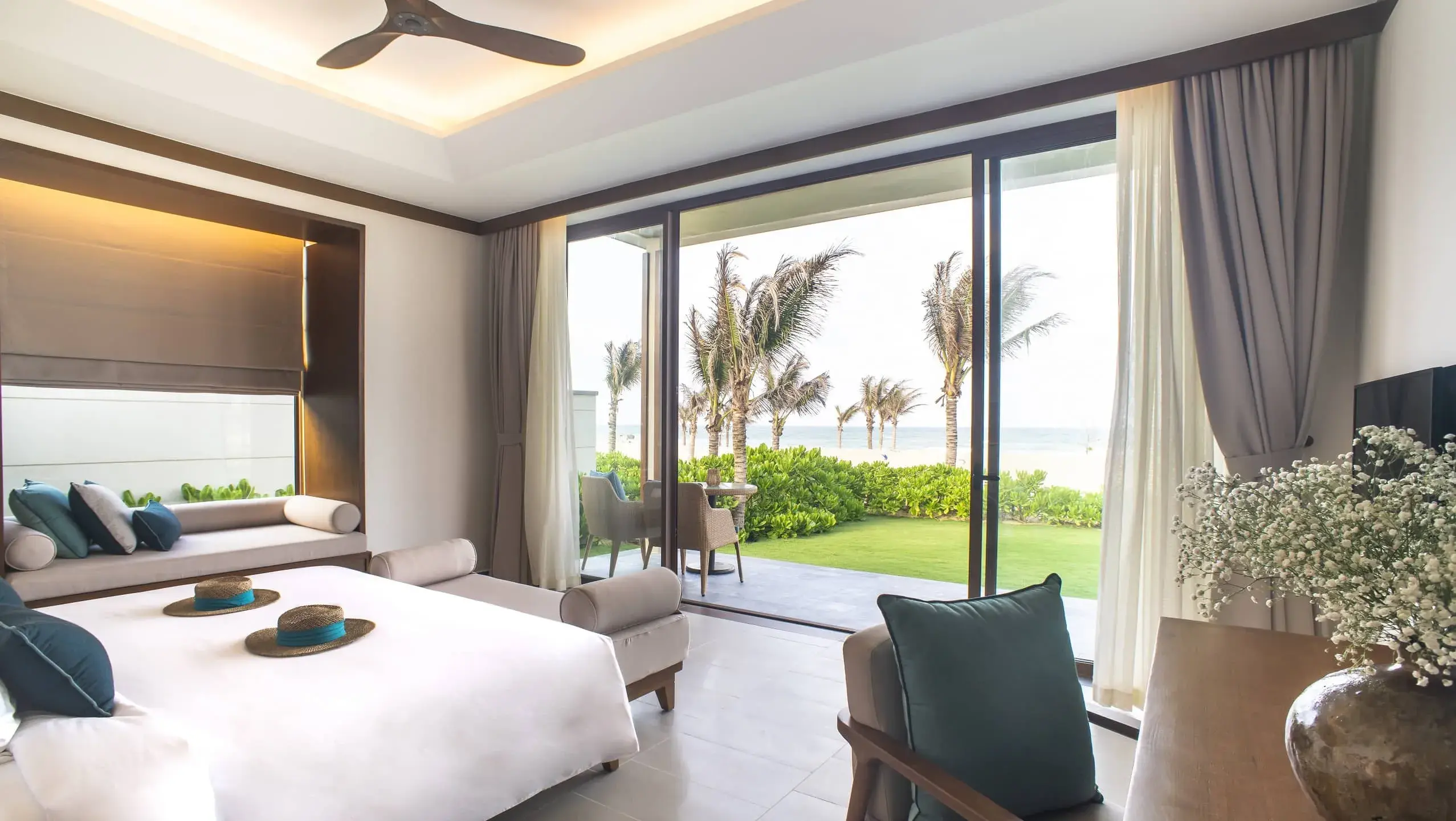 Privacy, space, and exceptional ocean views are the hallmarks of our three-bedroom villas. Each boasts two king-size and one small twin bedrooms, making them the ideal setting for entertaining and relaxing with family or friends, and the quintessential beachfront home-away-from-home. With a 47m² private infinity pool and private access to the beach, there is no better way to enjoy the tranquility of Maia.